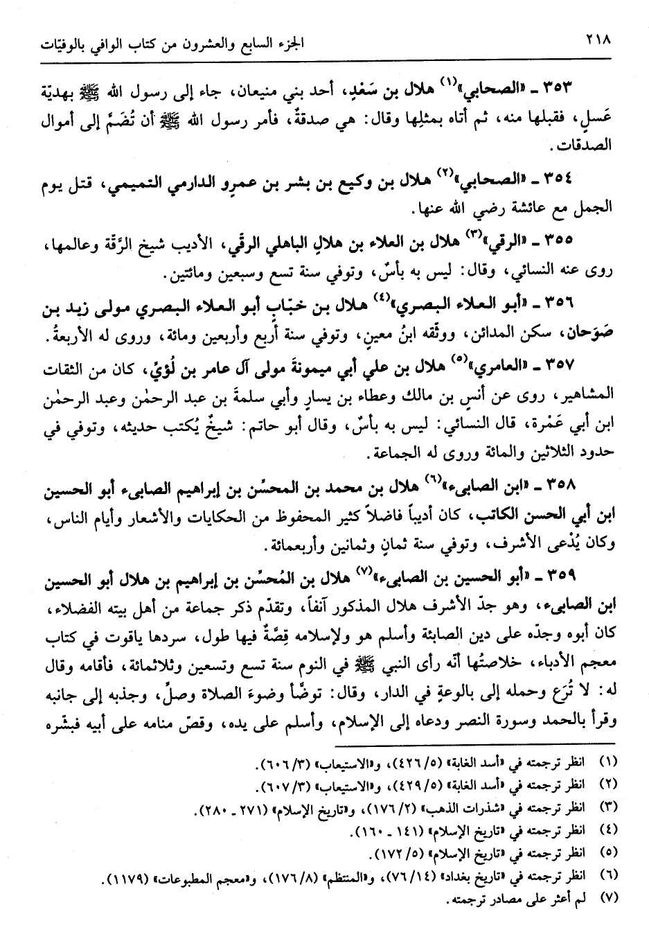 هِلَال بن المحسِّن بن إِبْرَاهِيم بن هِلَال أَبُو الْحُسَيْن بن الصابىء وَهُوَ جدّ الْأَشْرَف هِلَال الْمَذْكُور آنِفا وَتقدم ذكر جمَاعَة من أهل بَيته الْفُضَلَاء كَانَ أَبوهُ وجدّه على دين الصابئة)