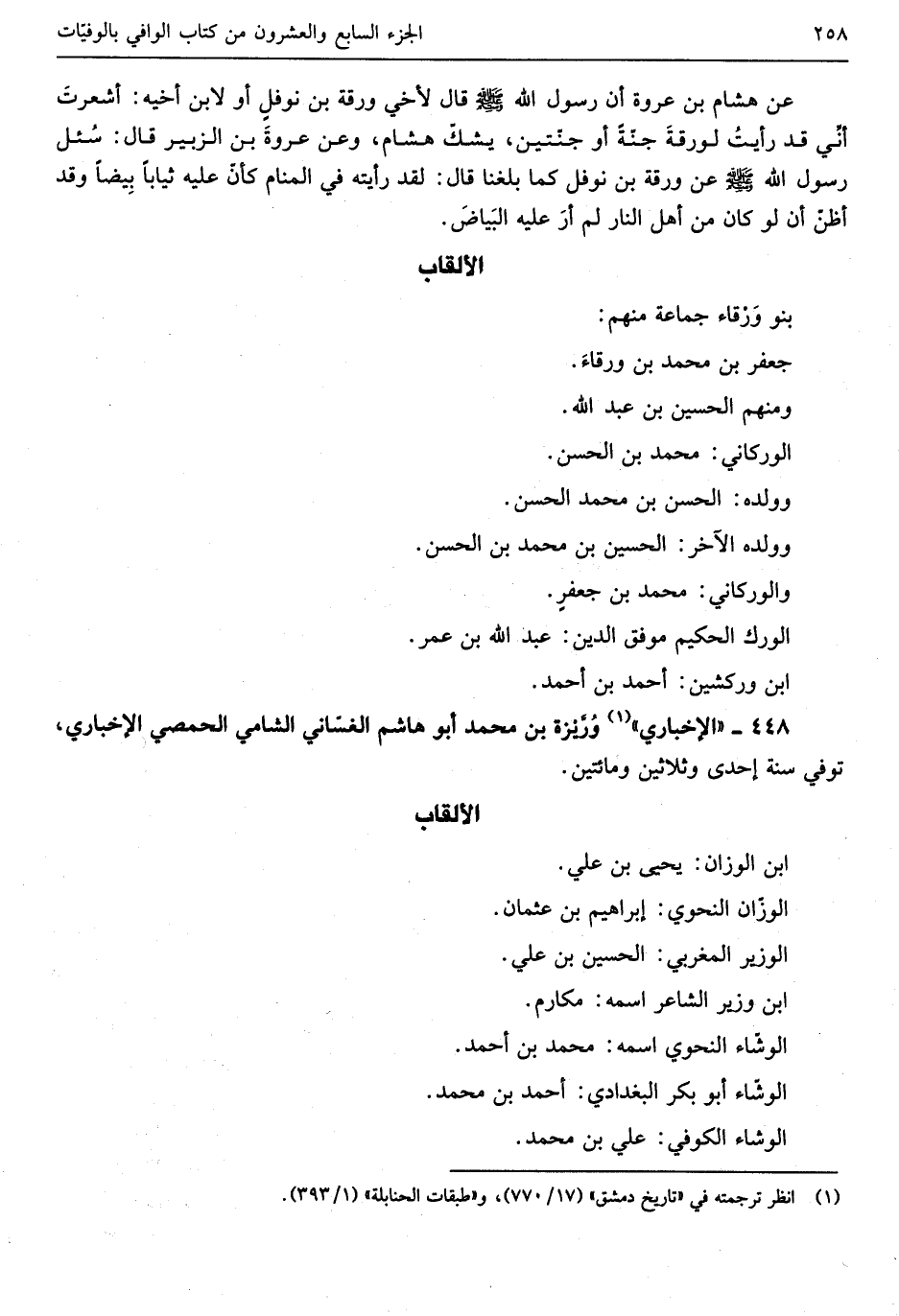 وَولده الْحسن بن مُحَمَّد بن الْحسن وَولده الآخر الْحُسَيْن بن مُحَمَّد بن الْحسن والوركاني مُحَمَّد بن جعفرٍ الورك الْحَكِيم موفق الدّين عبد الله بن عمر ابْن وركشين أَحْمد بن أَحْمد