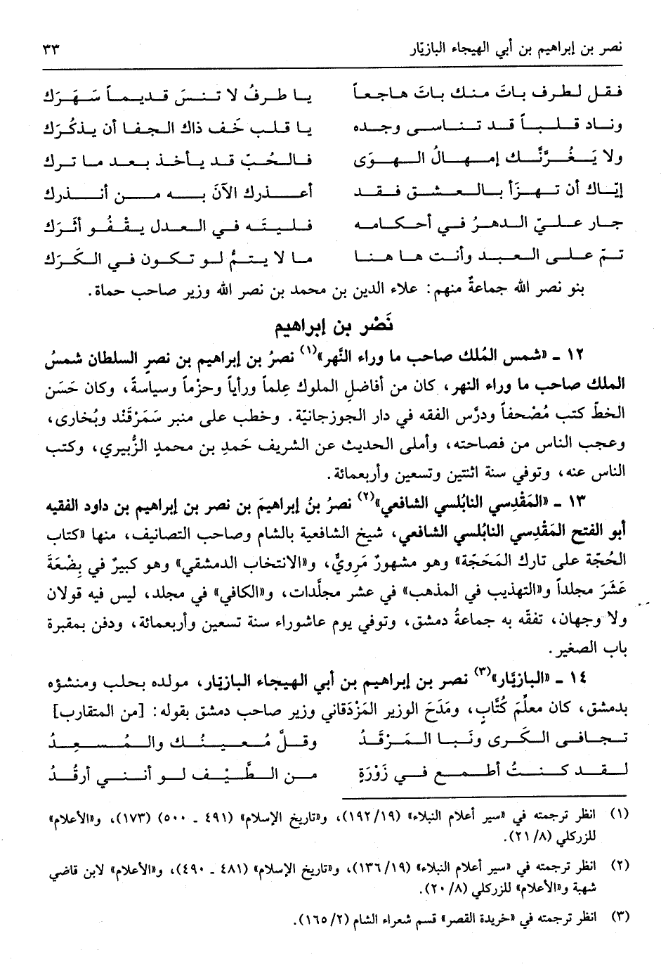 نصر بن إِبْرَاهِيم بن أبي الهيجاء البازيّار مولده بحلب ومنشأه بِدِمَشْق كَانَ مُعلم كُتابٍ ومَدَحَ الْوَزير المَزدَقاني وَزِير صَاحب دمشق بقوله
