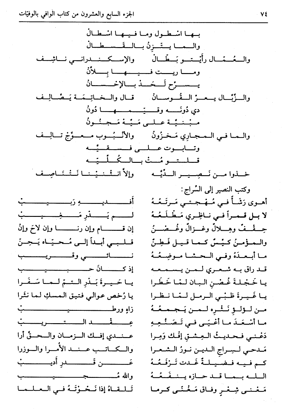 (مَدحي لسِراجِ الدّين نورُ الشعرا ... وَالْكَاتِب عِنْد الأُمرا والوزرا)