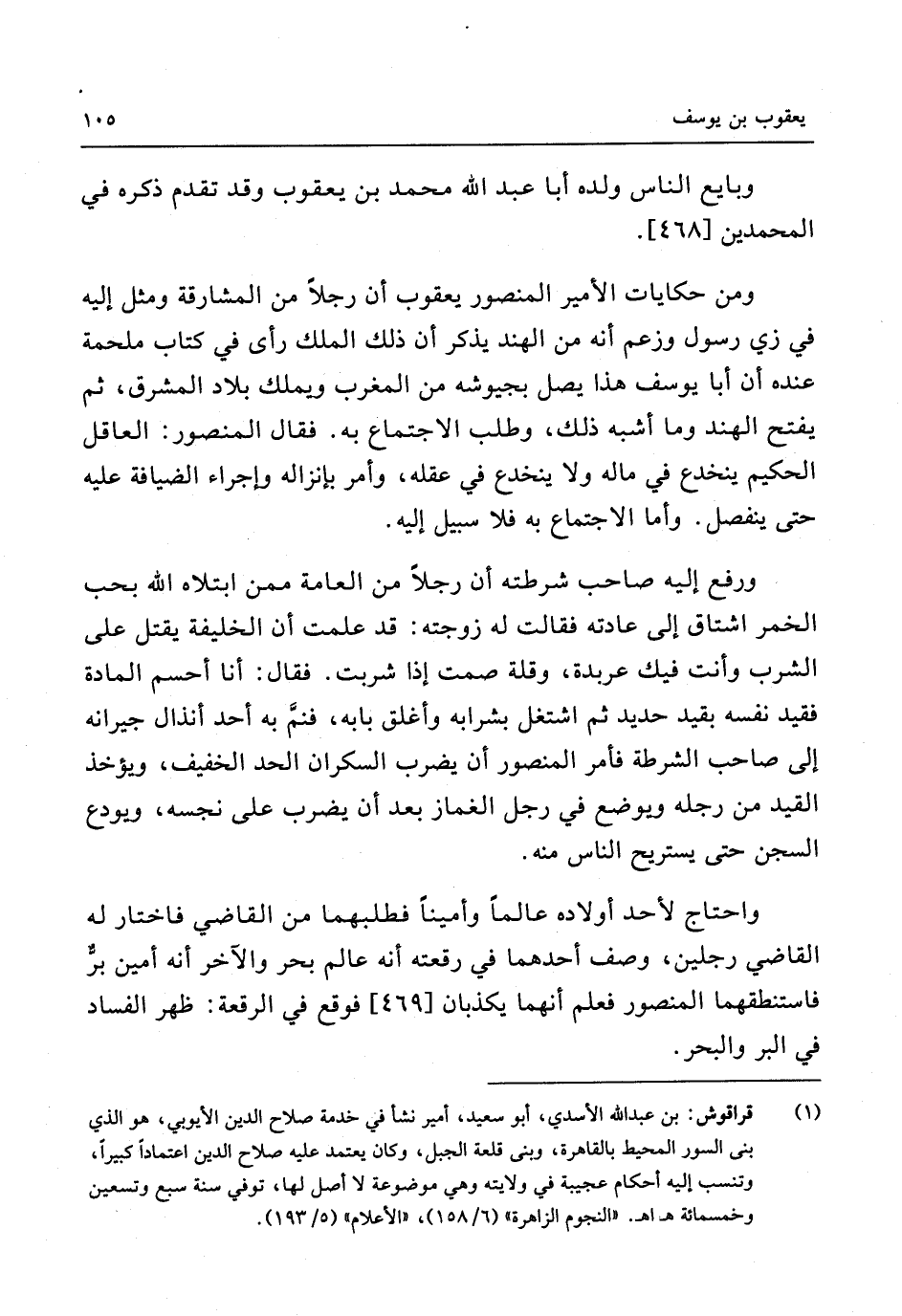 وَمن حكايات الْأَمِير الْمَنْصُور يَعْقُوب أَن رجلا من المشارقة وَمثل إِلَيْهِ فِي زِيّ رَسُول وَزعم أَنه من الْهِنْد يذكر أَن ذَلِك الْملك رأى فِي كتاب ملحمة عِنْده أَن أَبَا يُوسُف هَذَا يصل بجيوشه من الْمغرب وَيملك بِلَاد الْمشرق ثمَّ يفتح الْهِنْد وَمَا أشبه ذَلِك وَطلب الِاجْتِمَاع بِهِ فَقَالَ الْمَنْصُور الْعَاقِل الْحَكِيم ينخدع فِي مَاله وَلَا ينخدع فِي عقله وَأمر بإنزاله وإجراء الضِّيَافَة عَلَيْهِ حَتَّى ينْفَصل وَأما الِاجْتِمَاع بِهِ فَلَا سَبِيل إِلَيْهِ