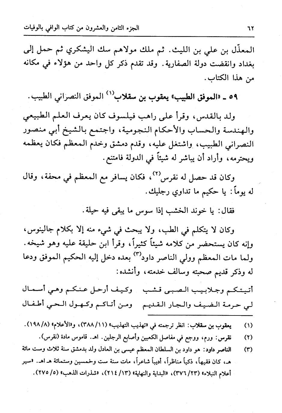 59 - الْمُوفق الطَّبِيب يَعْقُوب بن سقلاب الْمُوفق النَّصْرَانِي الطَّبِيب