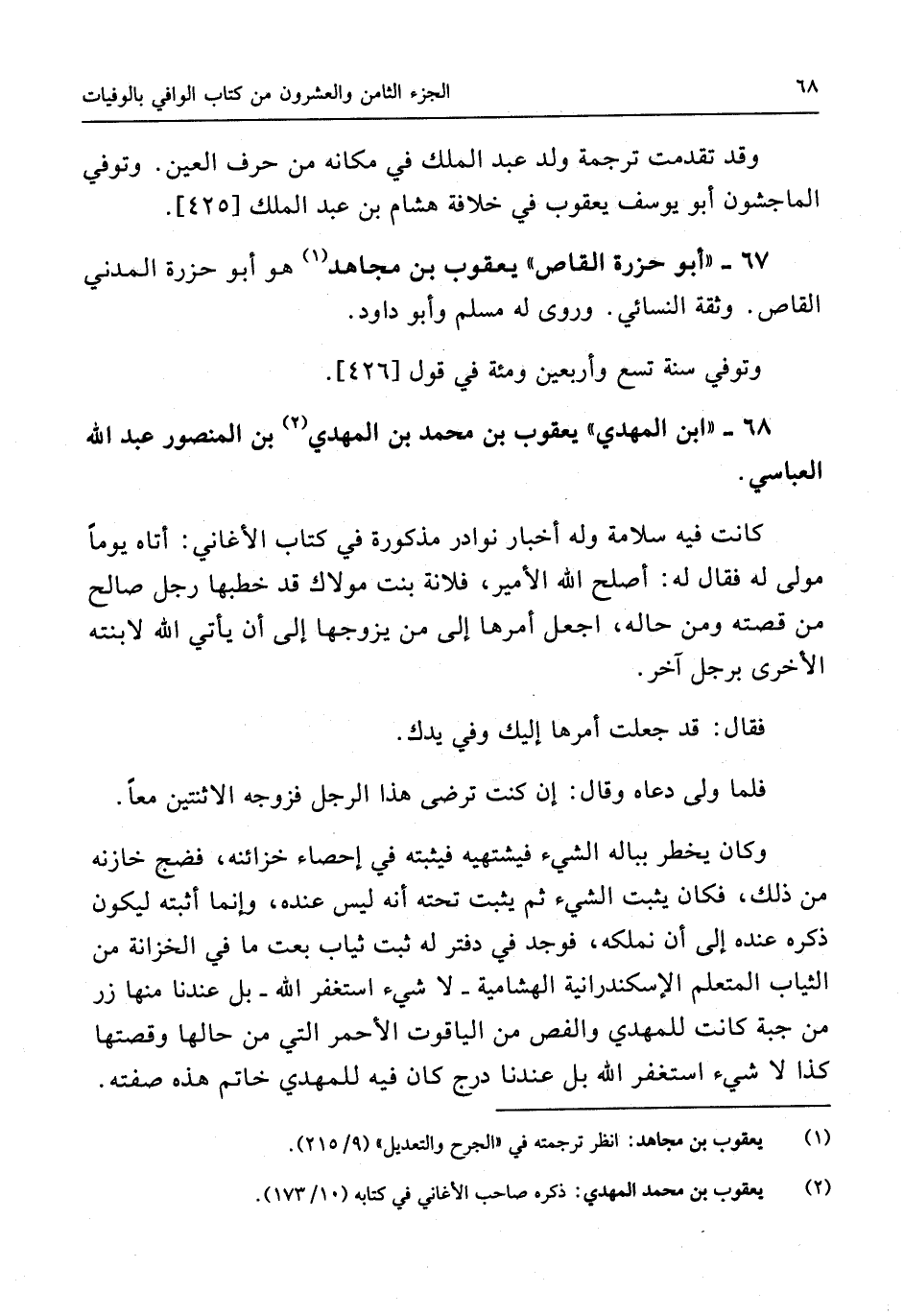 68 - ابْن الْمهْدي يَعْقُوب بن مُحَمَّد بن الْمهْدي بن الْمَنْصُور عبد الله العباسي