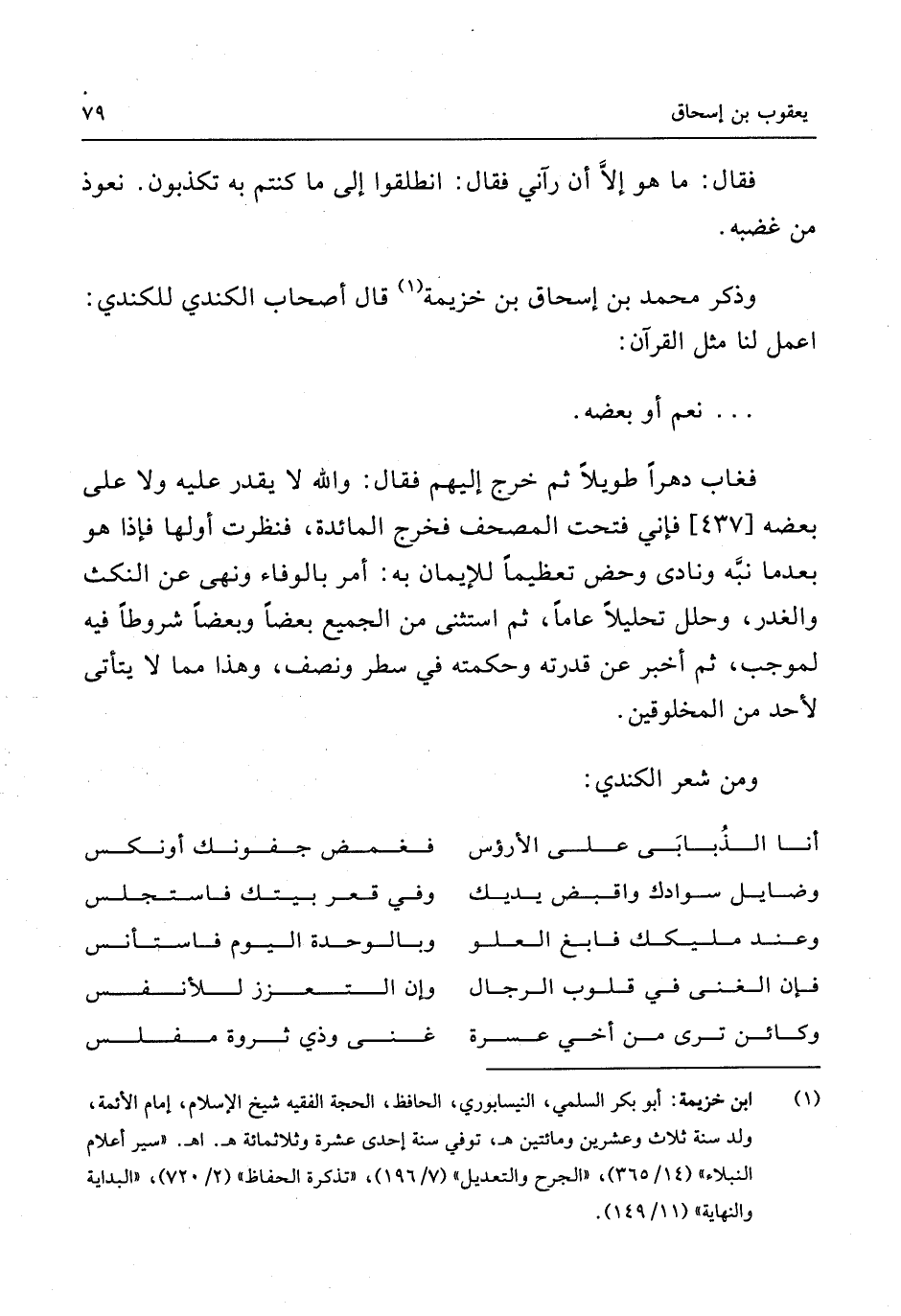 وَذكر مُحَمَّد بن إِسْحَاق بن خُزَيْمَة قَالَ أَصْحَاب الْكِنْدِيّ للكندي اعْمَلْ لنا مثل الْقُرْآن