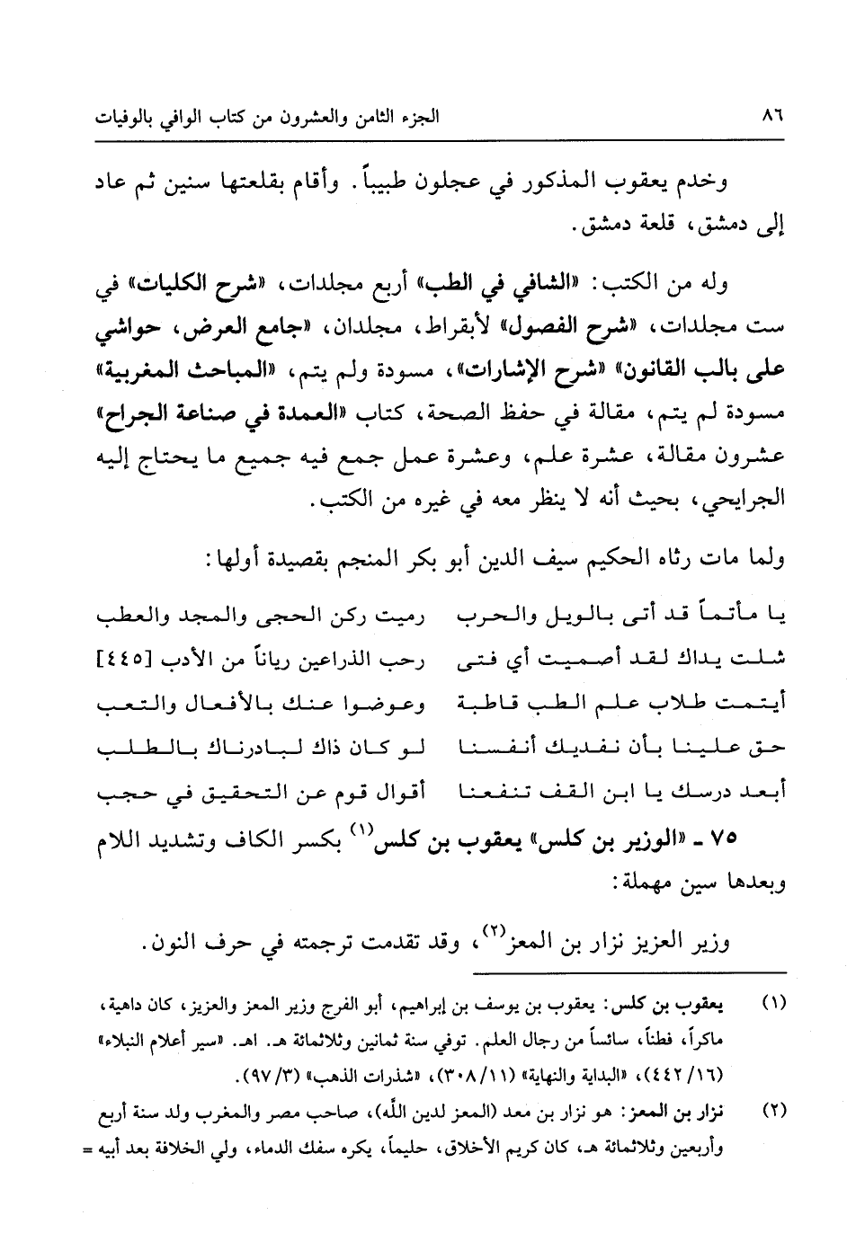 وَلما مَاتَ رثاه الْحَكِيم سيف الدّين أَبُو بكر المنجم بقصيدة أَولهَا