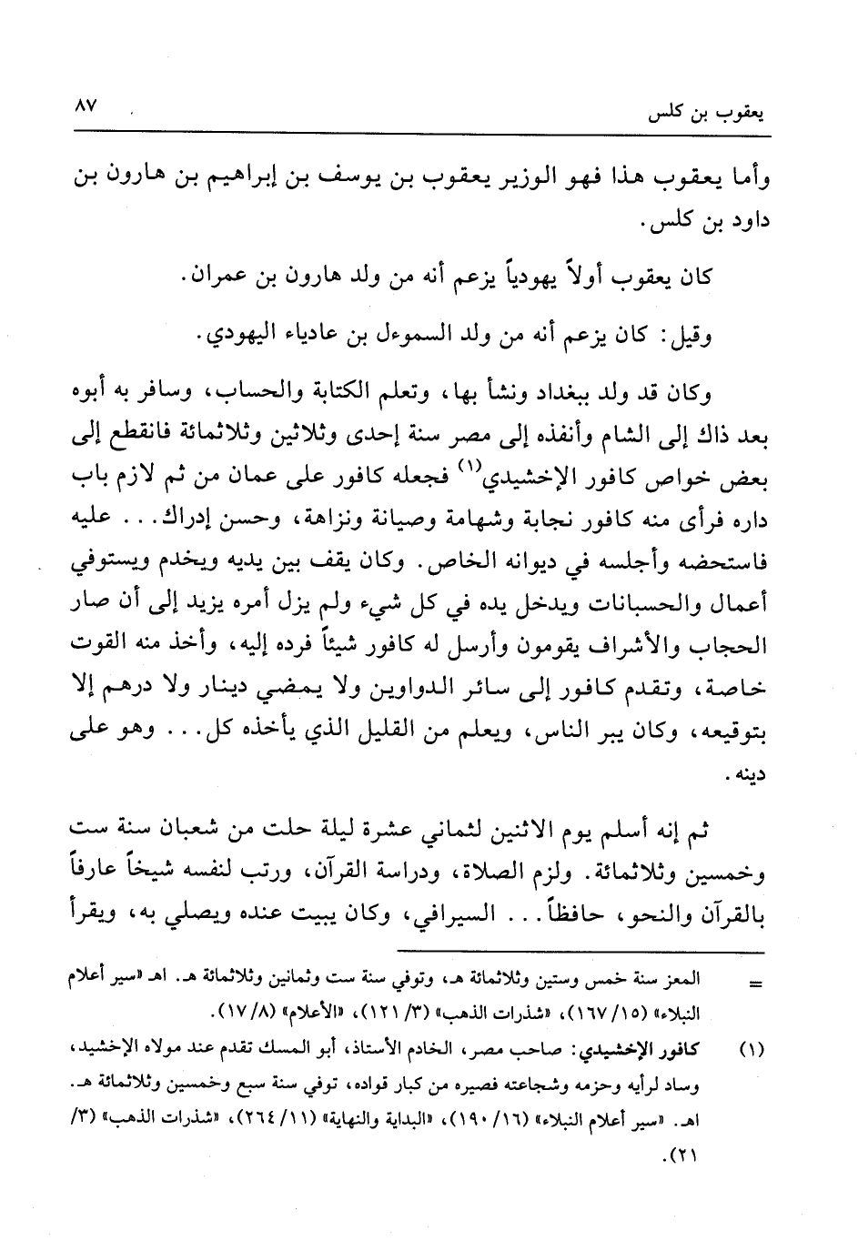 وَأما يَعْقُوب هَذَا فَهُوَ الْوَزير يَعْقُوب بن يُوسُف بن إِبْرَاهِيم بن هَارُون بن دَاوُد بن كلس