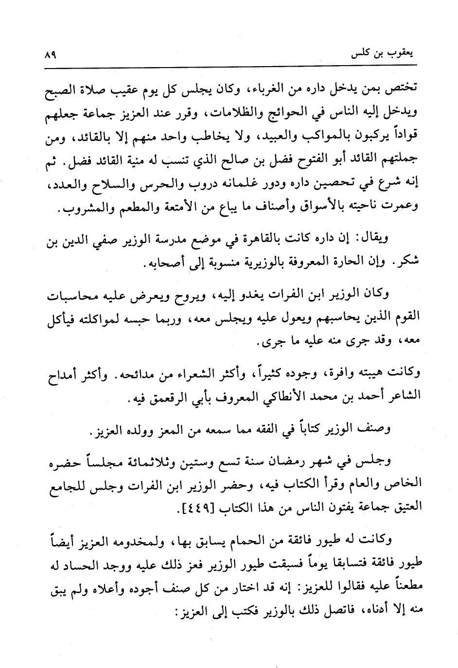 وَجلسَ فِي شهر رَمَضَان سنة تسع وَسِتِّينَ وثلاثمائة مَجْلِسا حَضَره الْخَاص وَالْعَام وَقَرَأَ الْكتاب فِيهِ وَحضر الْوَزير ابْن الْفُرَات وَجلسَ للجامع الْعَتِيق جمَاعَة يفتون النَّاس فِي هَذَا الْكتاب [449]