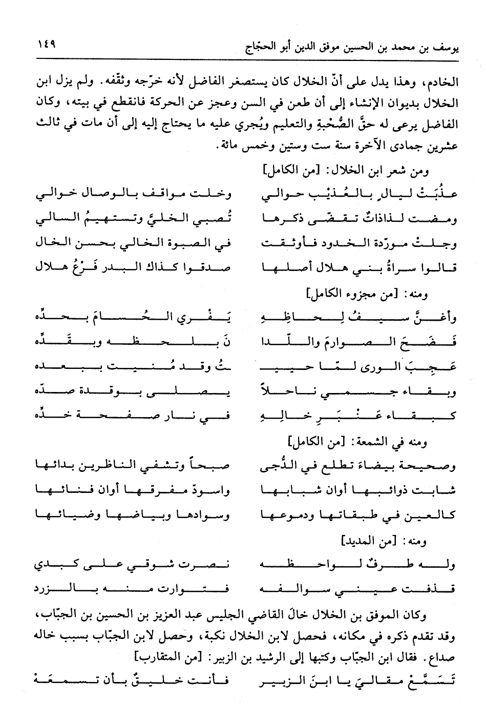 وَمن شعر ابْن الْخلال // (من الْكَامِل) //