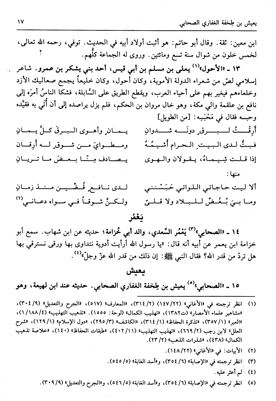 15 - الصَّحَابِيّ يعِيش بن طخفة الْغِفَارِيّ الصَّحَابِيّ حَدِيثه عَن ابْن لَهِيعَة وَهُوَ