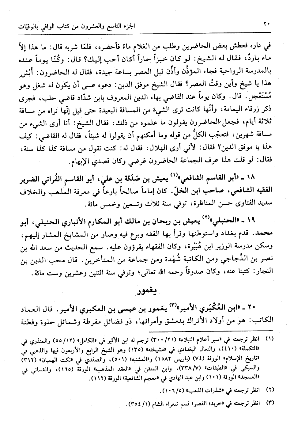 20 - ابْن العكبري الْأَمِير يغمور بن عِيسَى بن العكبري الْأَمِير قَالَ الْعِمَاد الْكَاتِب هُوَ من أَوْلَاد الأتراك بِدِمَشْق وأمرائها ذُو فَضَائِل مفرطة وشمائل حلوة وفطنة