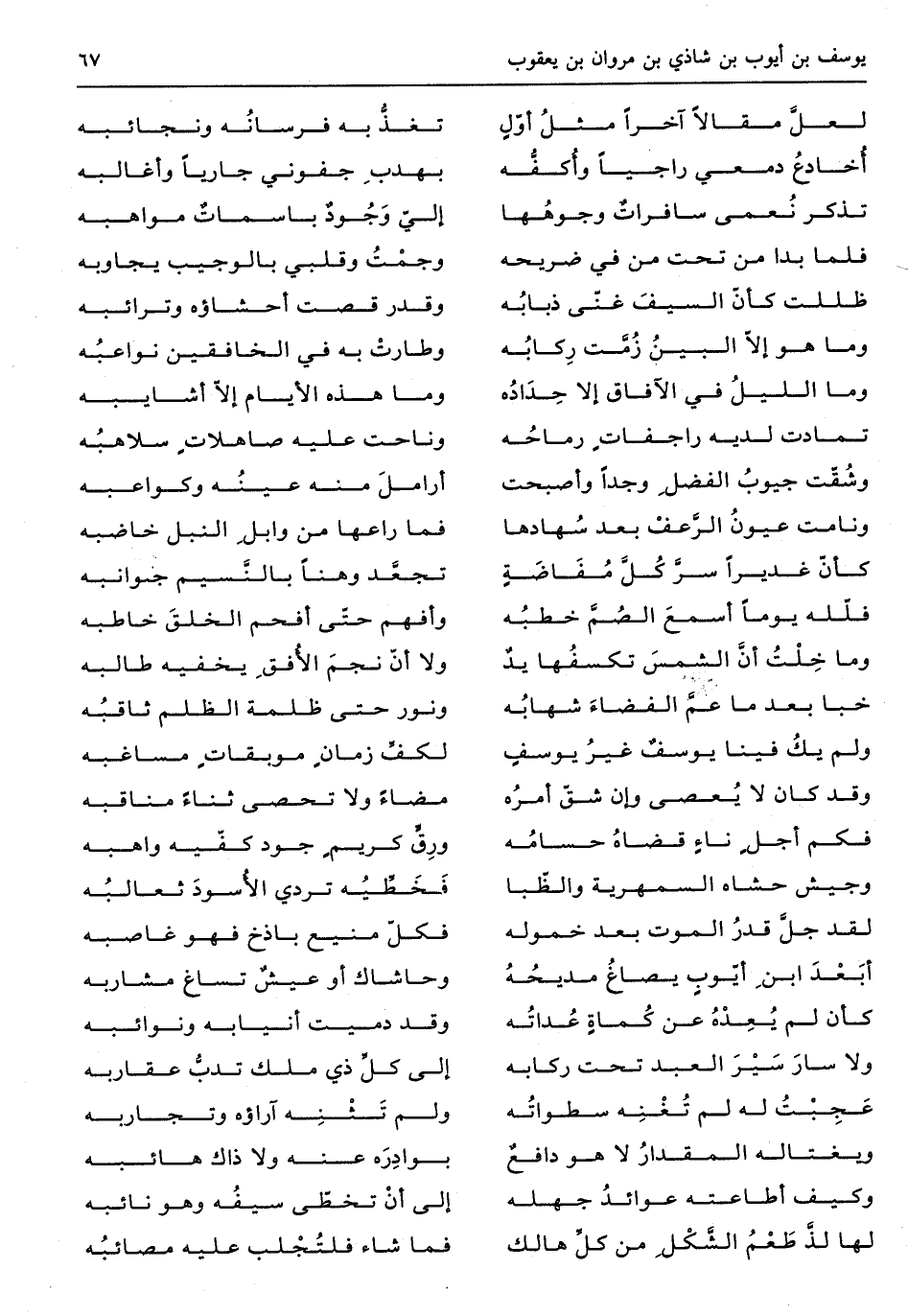 (أبعد ابْن أَيُّوب يصاغ مديحه ... وحاشاك أَو عَيْش تساغ مشاربه)