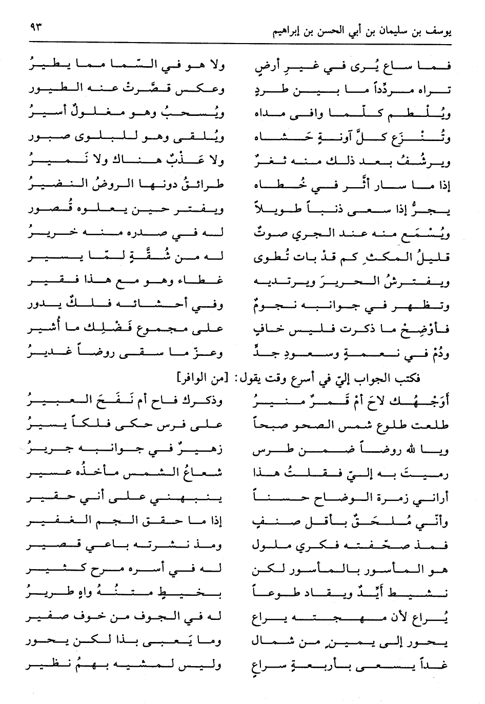 فَكتب الْجَواب إِلَيّ فِي أسْرع وَقت يَقُول // (من الوافر) //