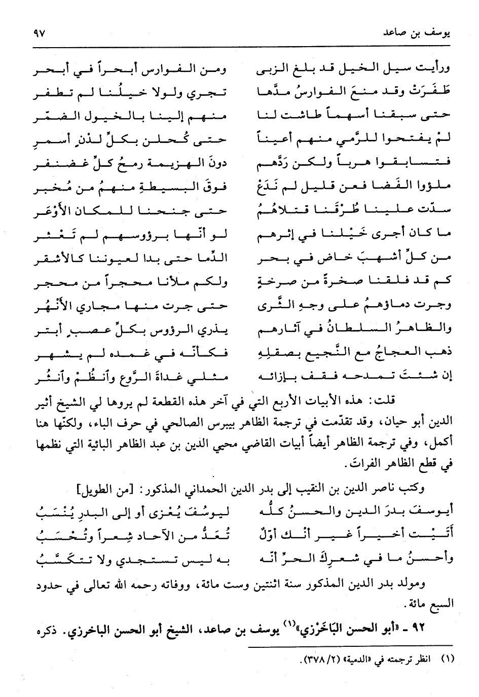 92 - أَبُو الْحسن الباخرزي يُوسُف ين صاعد الشَّيْخ أَبُو الْحسن الباخرزي ذكره