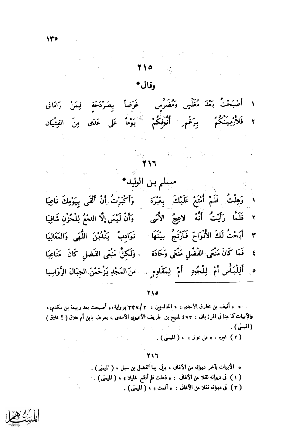 فَلَمّا رَأيْتُ أَنَّهُ لاَعِجُ الأسَى ... وَأَنْ لَيْسَ إلاَّ الدَّمْعُ للِحْزْنِ شَافِياً