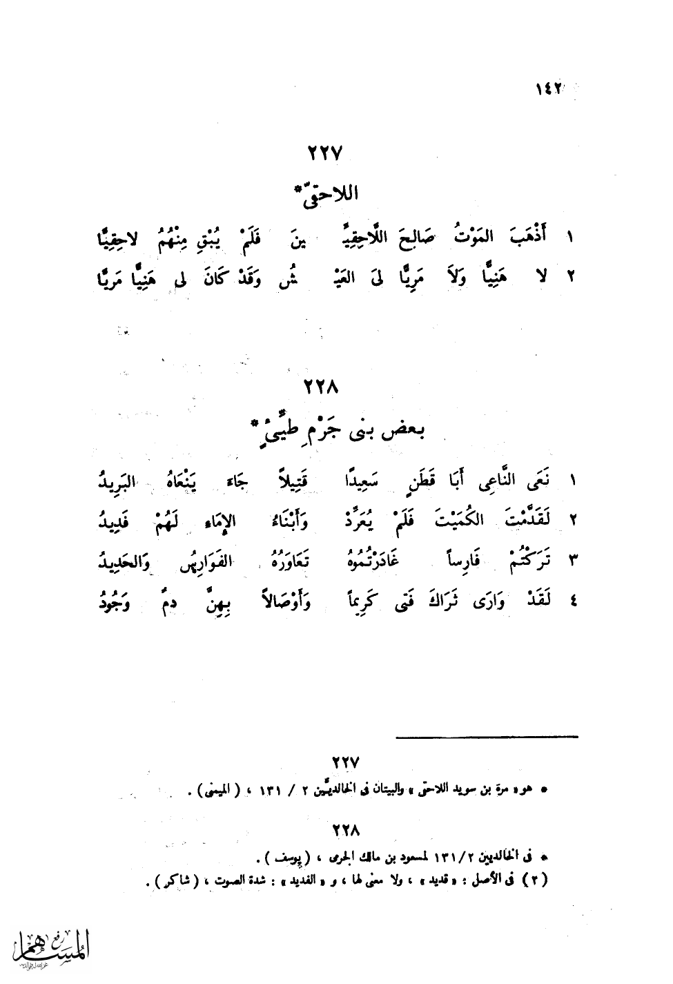 أَذْهَبَ المَوْتُ صَالِحَ اللاَّ حِقِيِّينَ ... فَلَمْ يُبْقِ مِنْهُمُ لاَحِقِياً