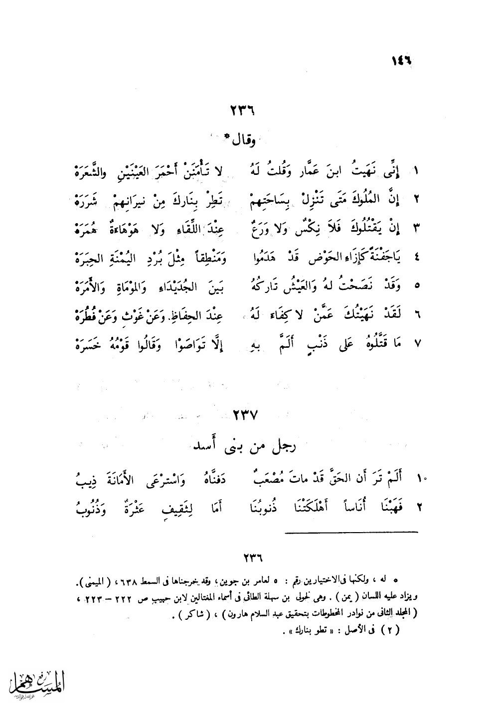 مَا قَتَلُوهُ عَلَى ذَنْبٍ أَلَمَّ بهِ ... إلاَّ تَوَاصَوْا وَقَالُوا قَوْمُهُ خَسَرَهْ