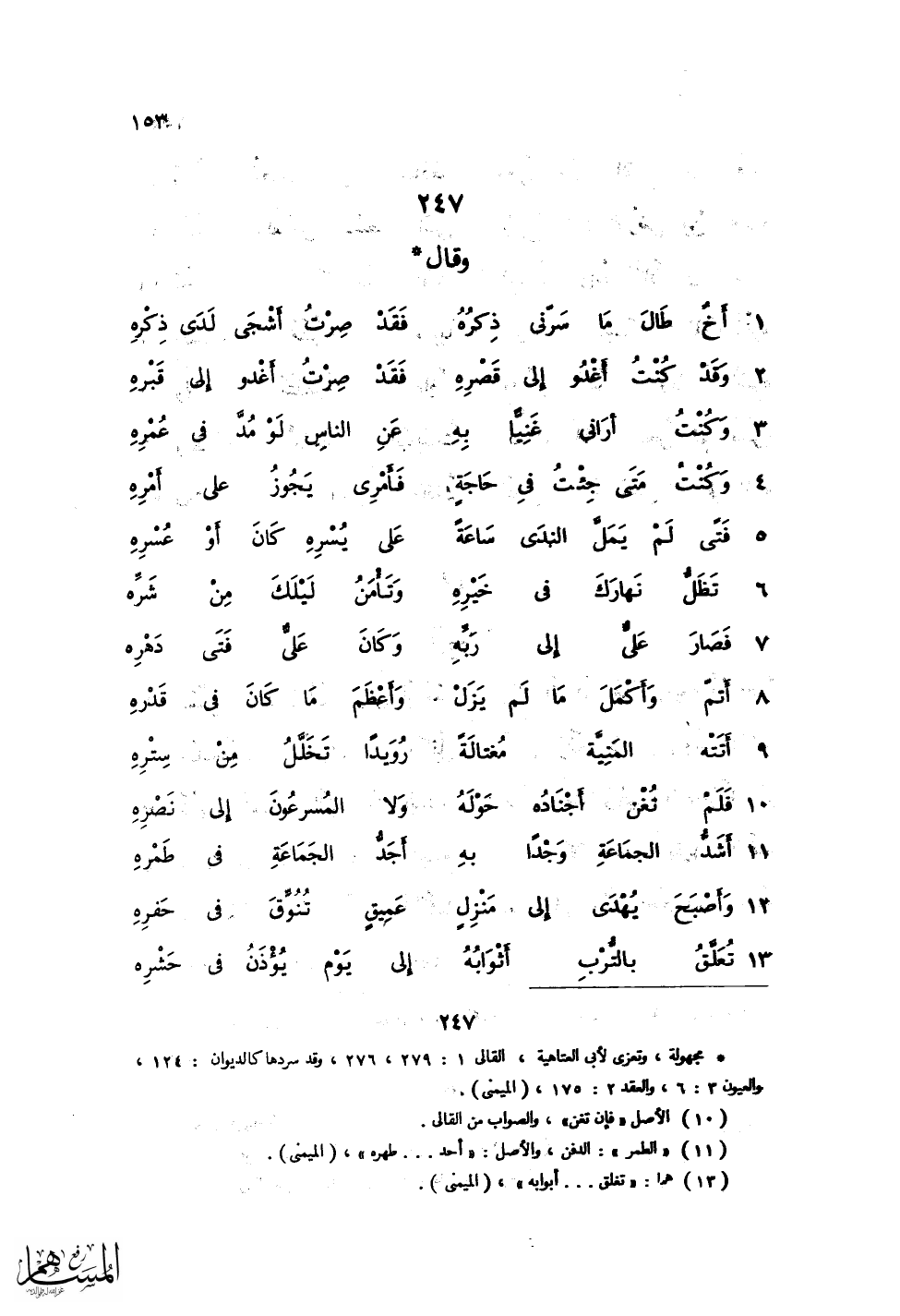 تُعَلَّقُ بالتُّرْبِ أَثْوَابُهُ ... إلى يَوْمِ يُؤذَنُ فِي حَشْرِهِ
