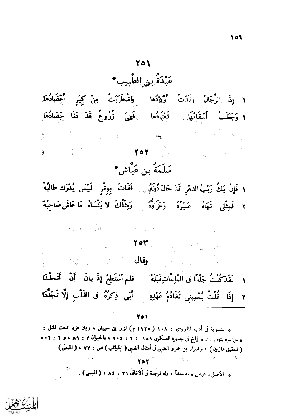 فَمِثْلِي نَهَاهُ صَبْرُهُ وَعَزَاؤُهُ ... وَمِثْلَكَ لاَ يَنْسَاهُ مَا عَاشَ صَاحِبُهُ