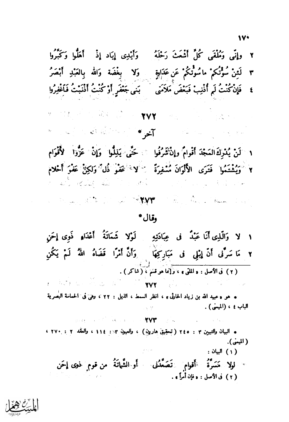 لَئِنْ سُؤيُكْم ملسُؤتكُمْ عَن عَدَاوةٍ ... وَلا بِغْضَةٍ وَاللهُ بِالعَبْدِ أبْصَرُ