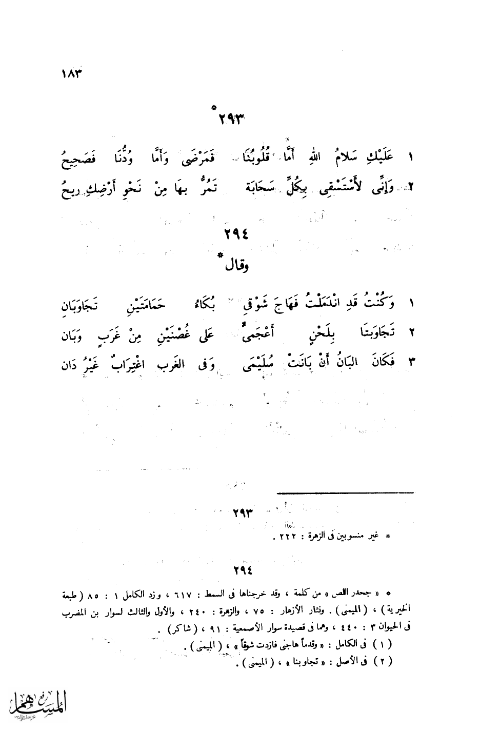 عَلَيْكِ سَلاَمُ اللهِ أَمَّا قُلُوبُنَا ... فَمَرْضَى وَأمَّا وُدُّنَا فَصَحِيحُ