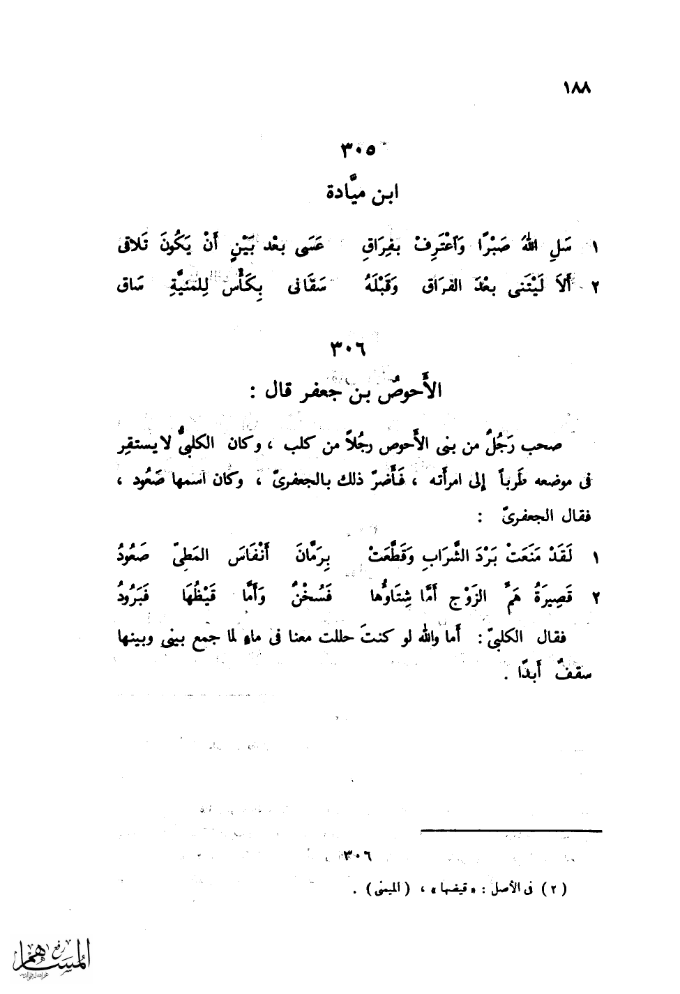 ألاَ لَيْتَني بعْدَ الفِرَاقِ وَقَبْلَهُ ... سَقَانِي بِكَأْسٍ للِمَنَّيةِ سَاقِ