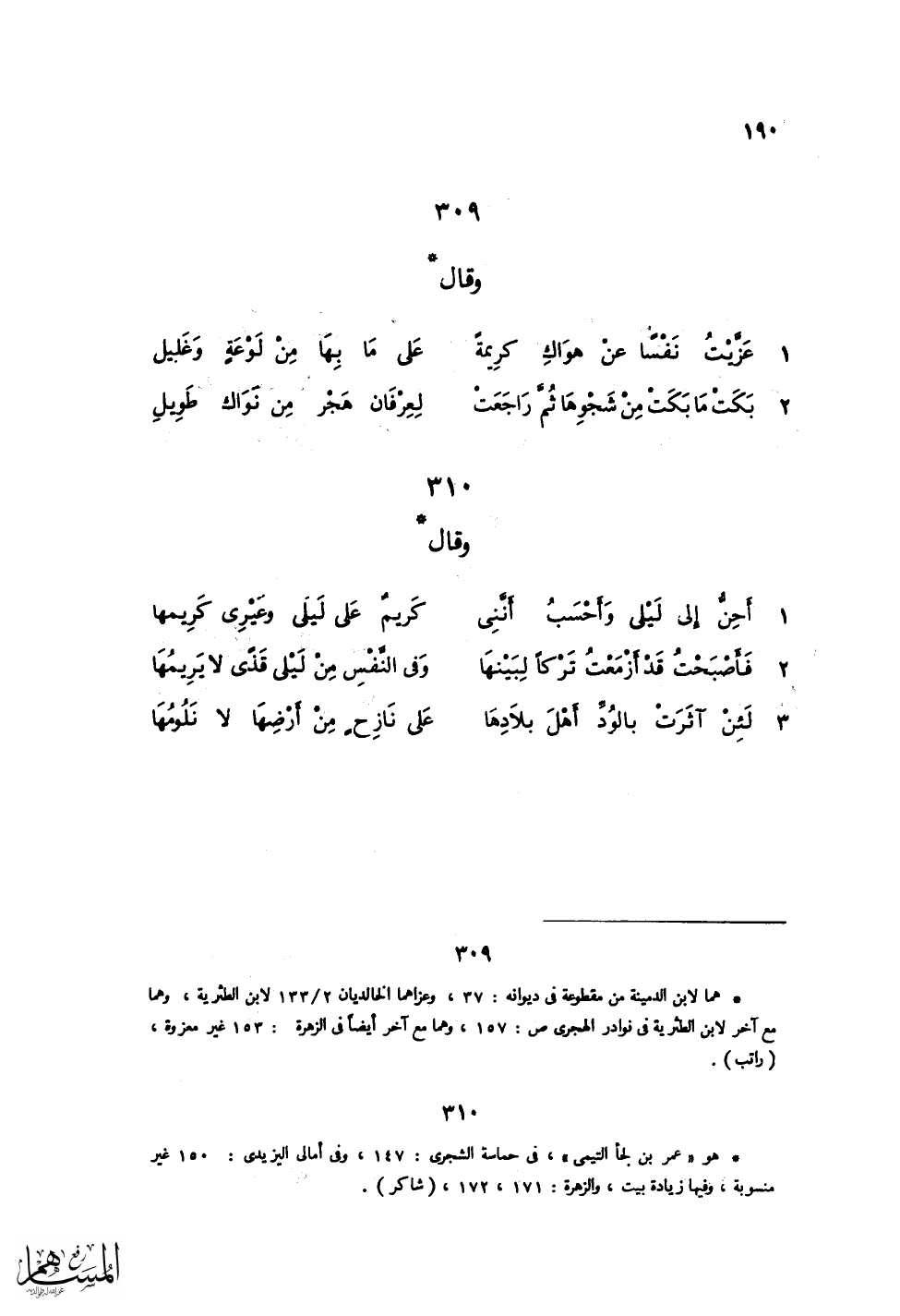 أَحِنُّ إلى لَيْلَى وَأَحْسَبُ أنَّنِي ... كَرِيمٌ عَلَى لَيْلَي وغَيْرِي كَرِيُمها