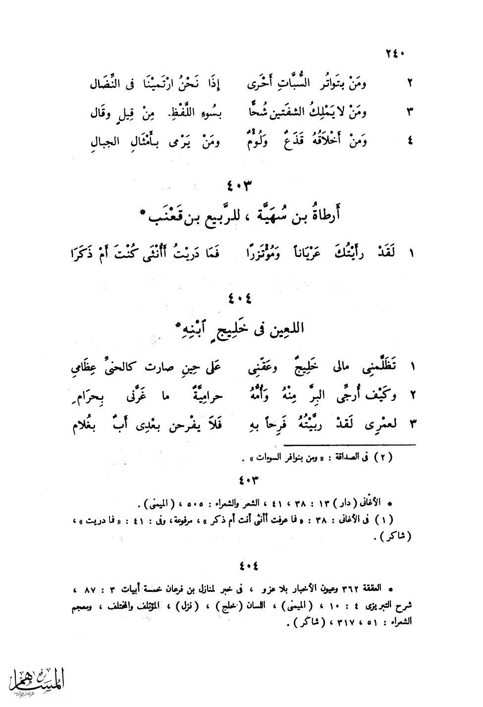 أرطاةُ بن سُهية، للربيع بن قعنب