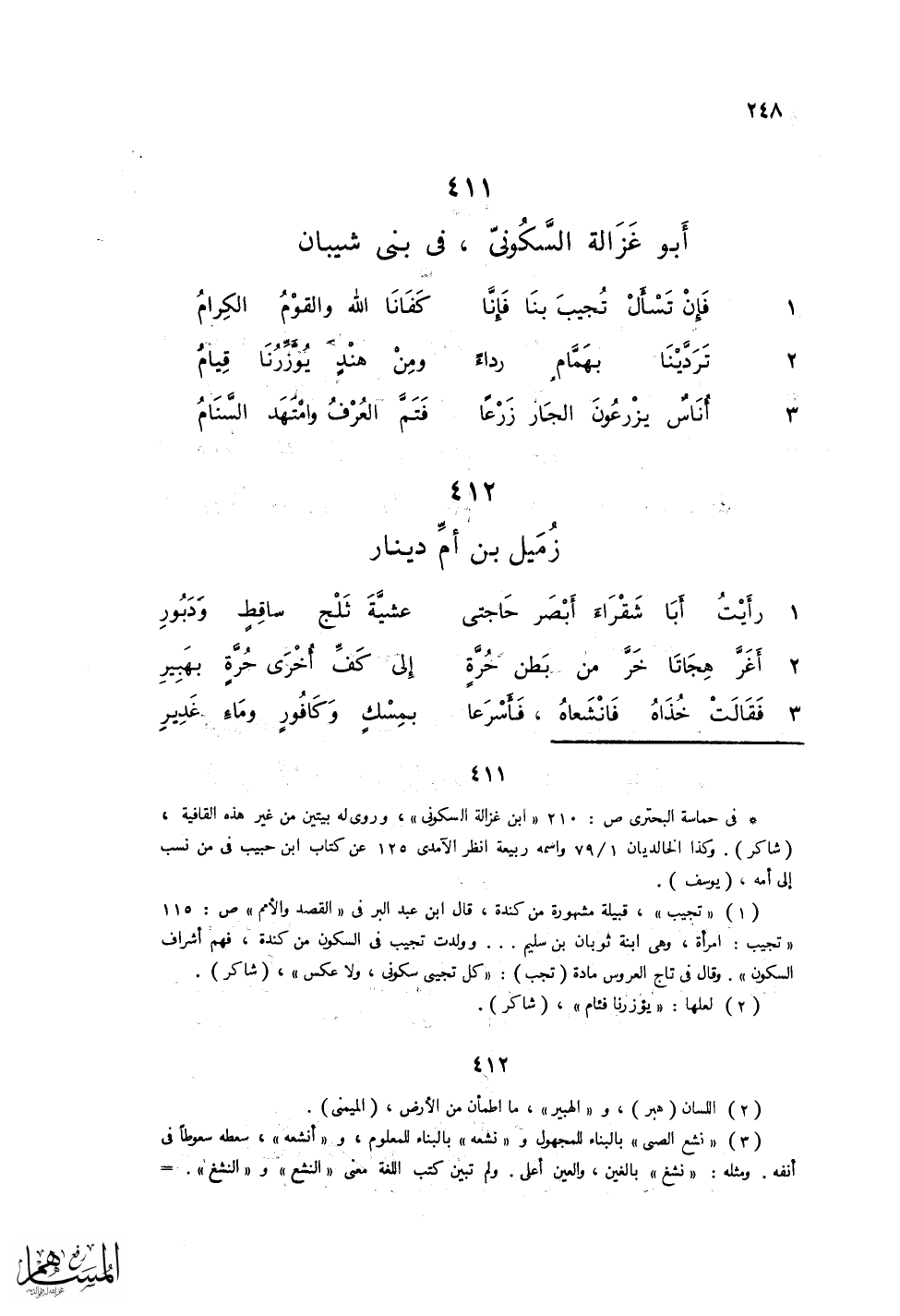 فَإنْ تَسْأَلْ تُجِيبَ بِناً فَإنَّا ... كَفَاناً اللهُ والقَوْمُ الكِرَامُ