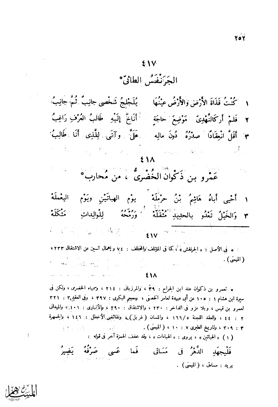 أَحْيَ أَبَاهُ هَاشِمُ بْنُ حَرْمَلَهْ ... يَوْمَ الهَبَاتَيْنِ وَيَوْمَ اليَعْمَلَهْ