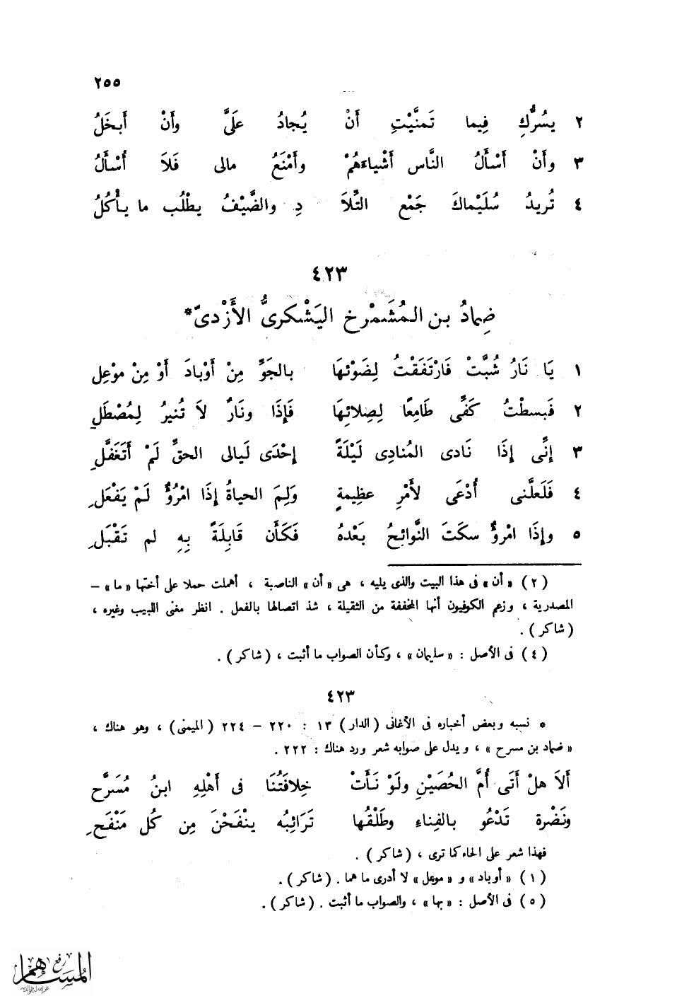 ياَ نَارُ شُبَّتْ فَارْ تفَقْتُ لِضَوْئِهَا ... بِالجوَّ مْنْ أَوْبَادَ أَوْ مِنْ مَوْعِلِ