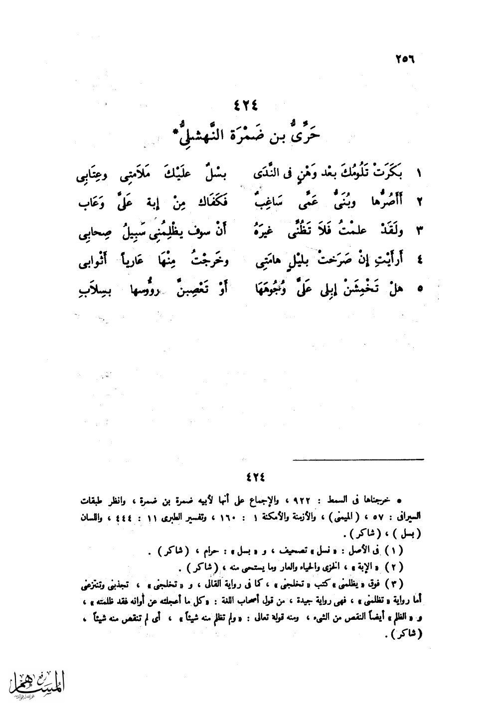 بَكَرَتْ تَلُومُكَ بَعْدَوَهْنٍ في النّدَى ... بَسْلٌ عَلَيْكِ مَلاَمَتِي وَعِتَابِي