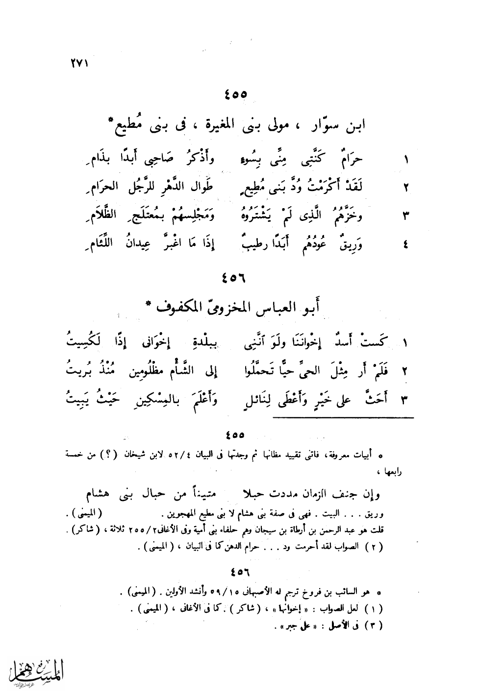 لَقَدْ أكْرَمْتُ وُدَّ بَنَِى مُطِيعٍ ... طَوَالَ الدَّهْرِ للرَّجُل الحَرَامِ