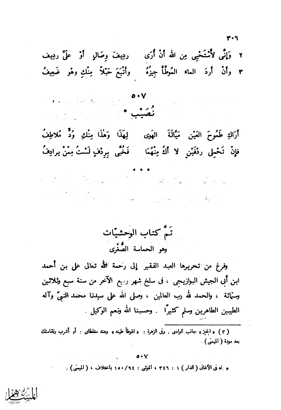 ثمَّ كتاب الوحشيَّات، وهو الحماسة الصُّغْرى