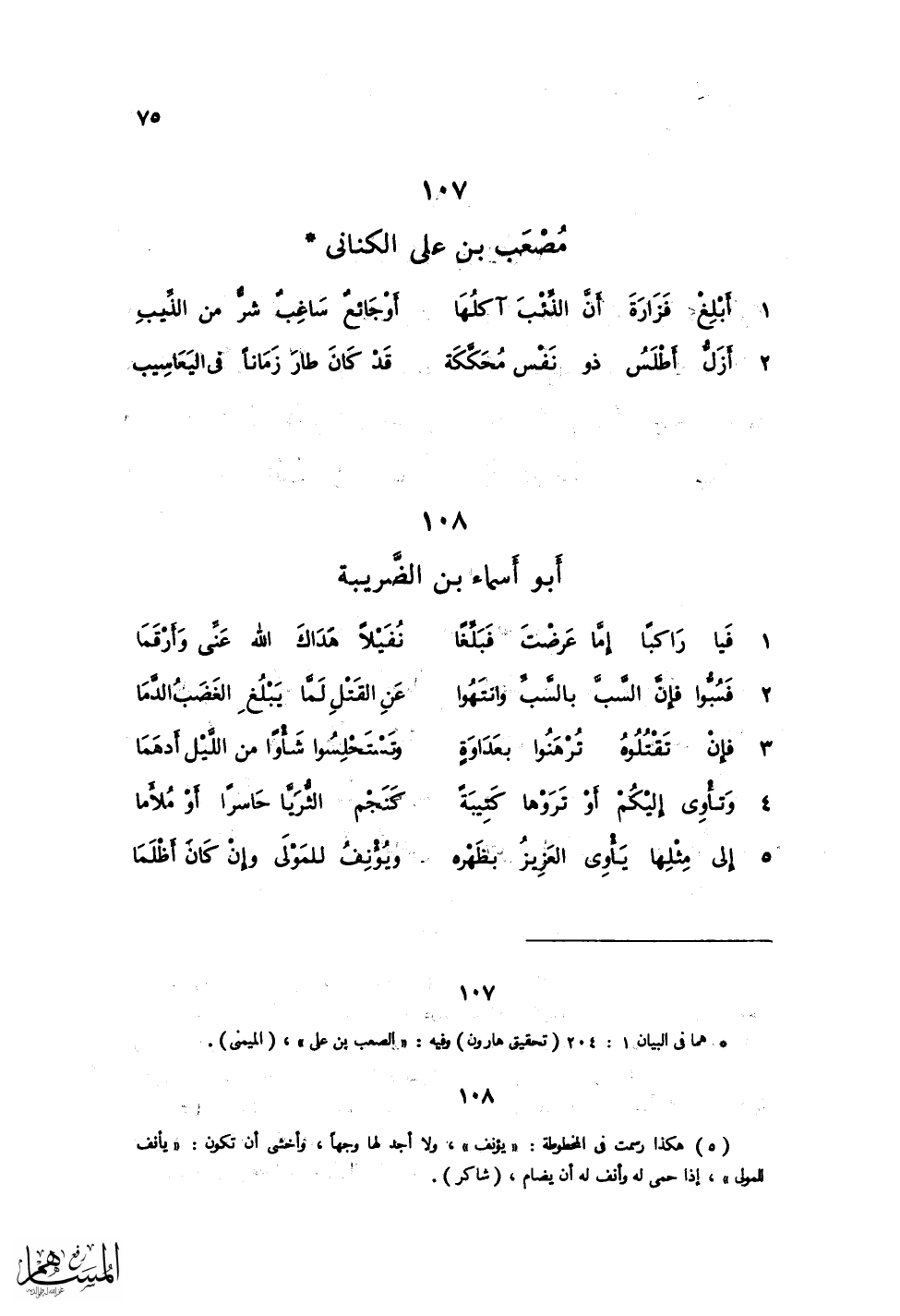 فَسُبُّوا فإنَّ السَّبَّ بالسَّبِّ وانتَهُوا ... عَنِ القَتْلِ لَمَّا يَبْلُغِ الغَضَبُ الدَّمَا