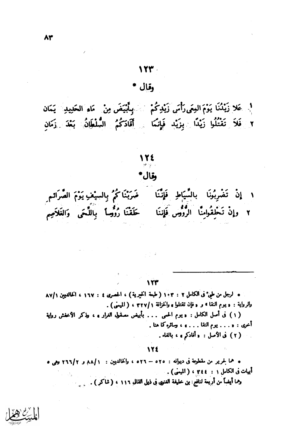 إِنْ تَضْرِبُونَا بِالسِّياطِ فَإنَّنَا ... ضَرَبْنَاكُمُ بِالسَّيْفِ يَوْمَ الصَّرَائِمِ