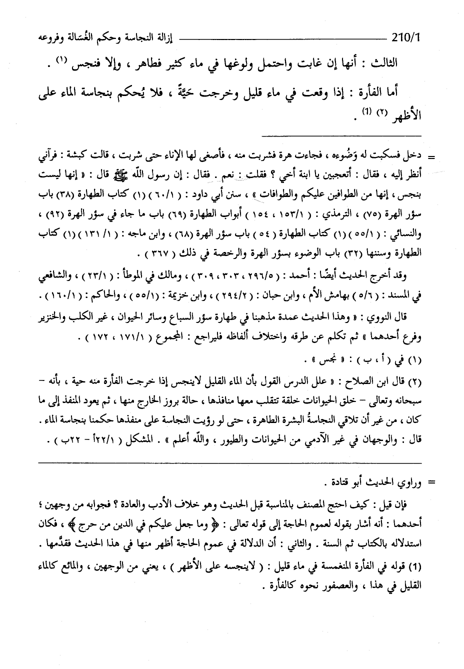 أما الْفَأْرَة إِذا وَقعت فى مَاء قَلِيل وَخرجت حَيَّة فَلَا يحكم بِنَجَاسَة المَاء على الْأَظْهر
