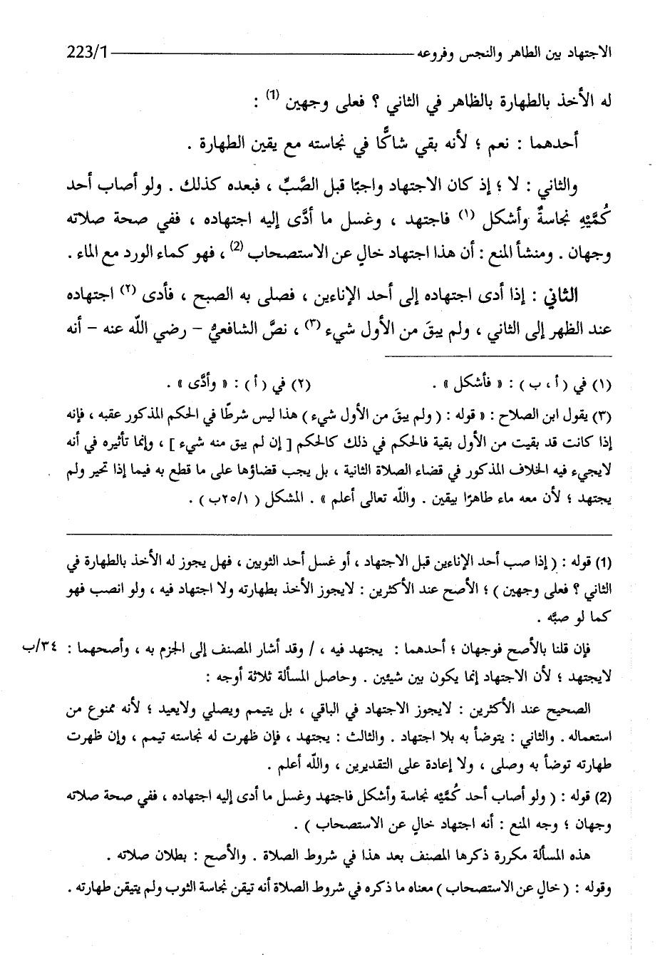 وَالثَّانِي لَا إِذْ كَانَ الِاجْتِهَاد وَاجِبا قبل الصب فبعده كَذَلِك وَلَو أصَاب أحد كميه نَجَاسَة وأشكل فاجتهد وَغسل مَا أدّى إِلَيْهِ اجْتِهَاده فَفِي صِحَة صلَاته وَجْهَان ومنشأ الْمَنْع أَن هَذَا اجْتِهَاد خَال عَن الِاسْتِصْحَاب فَهُوَ كَمَاء الْورْد مَعَ المَاء