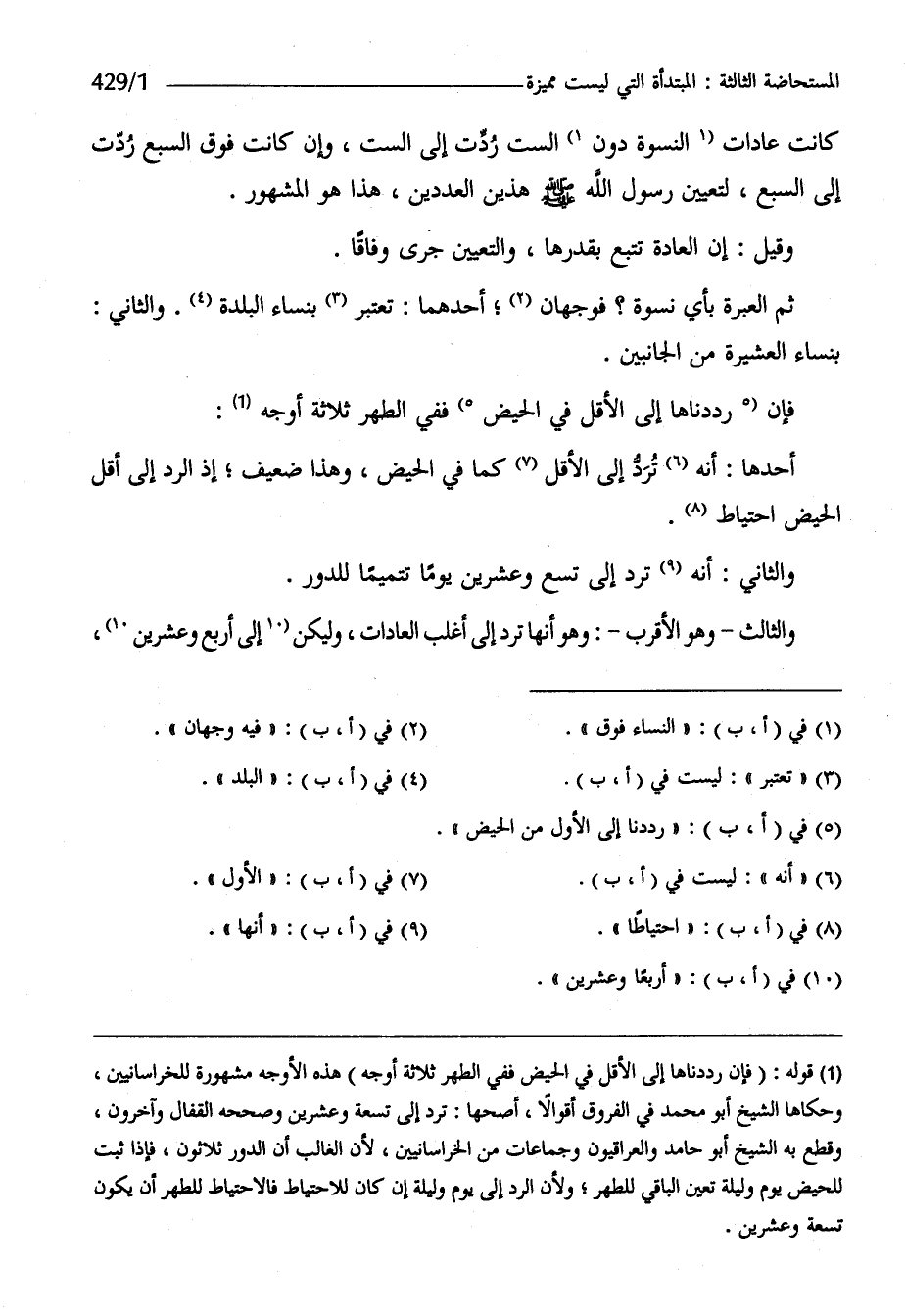أَحدهَا أَنه ترد إِلَى الْأَقَل كَمَا فى الْحيض وَهَذَا ضَعِيف إِذْ الرَّد إِلَى أقل الْحيض احْتِيَاط