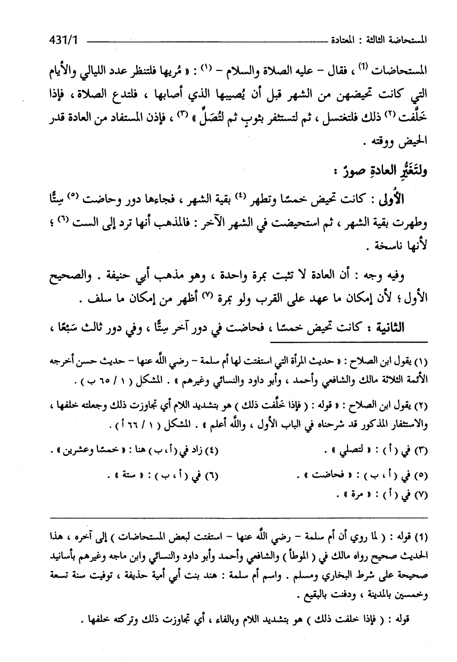 الثَّانِيَة كَانَت تحيض خمْسا فَحَاضَت فى دور آخر سِتا وَفِي دور ثَالِث سبعا