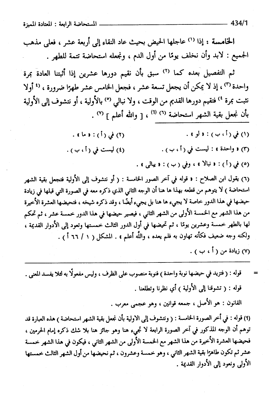 ثمَّ التَّفْصِيل بعده كَمَا سبق بِأَن نُقِيم دورها عشْرين إِذا أثبتنا الْعَادة بِمرَّة وَاحِدَة إِذْ لَا يُمكن أَن يَجْعَل تِسْعَة عشر فَجعل الْخَامِس عشر طهرا ضَرُورَة أَولا نثبت بِمرَّة فتقيم دورها الْقَدِيم من الْوَقْت وَلَا نبالي بالأولية أَو نتشوف إِلَى الأولية بِأَن نجْعَل بَقِيَّة الشَّهْر اسْتِحَاضَة وَالله أعلم