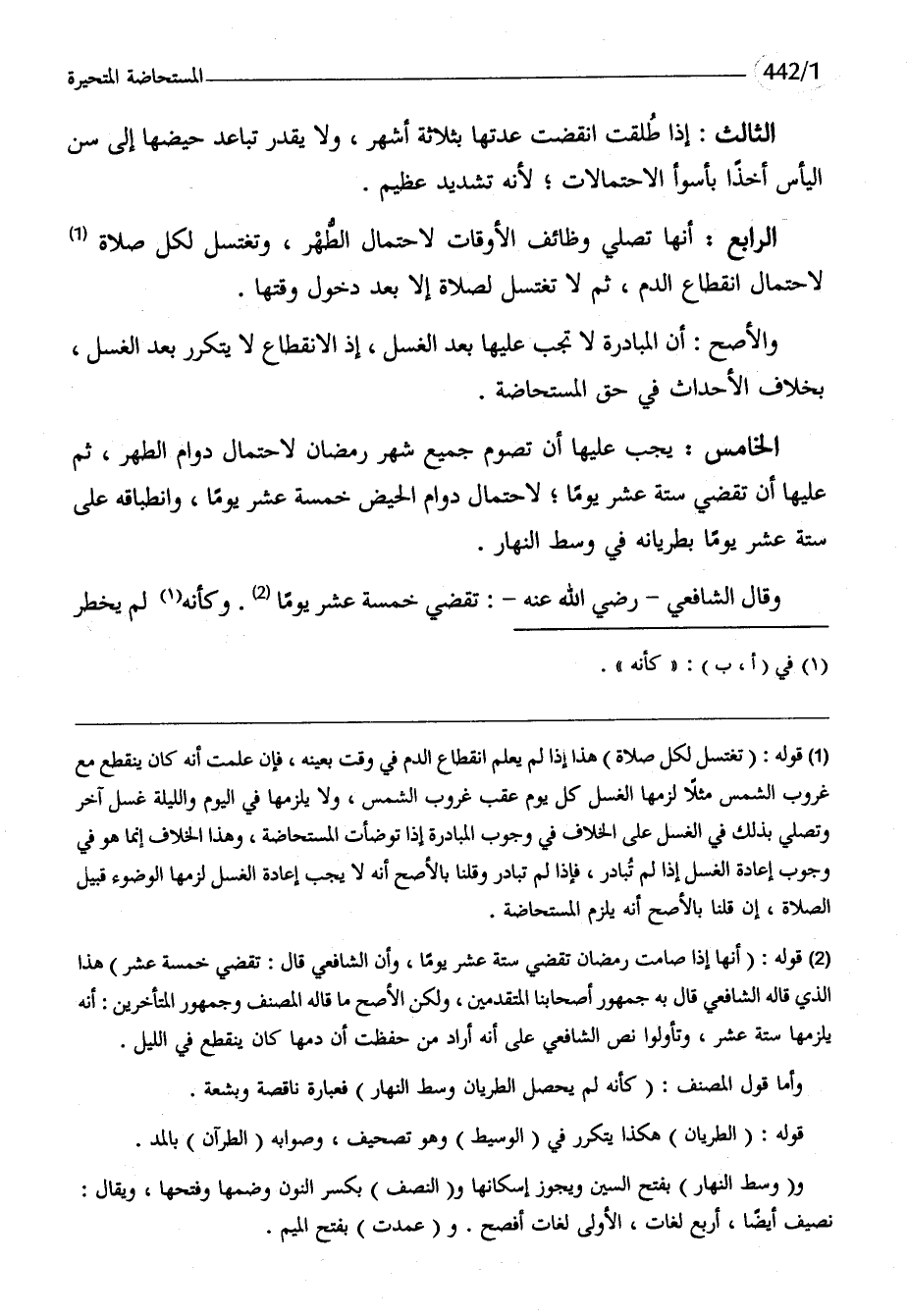 الْخَامِس يجب عَلَيْهَا أَن تَصُوم جَمِيع شهر رَمَضَان لاحْتِمَال دوَام الطُّهْر ثمَّ عَلَيْهَا أَن تقضي سِتَّة عشر يَوْمًا لاحْتِمَال دوَام الْحيض خَمْسَة عشر يَوْمًا وانطباقه على سِتَّة عشر يَوْمًا بطريانه فى وسط النَّهَار