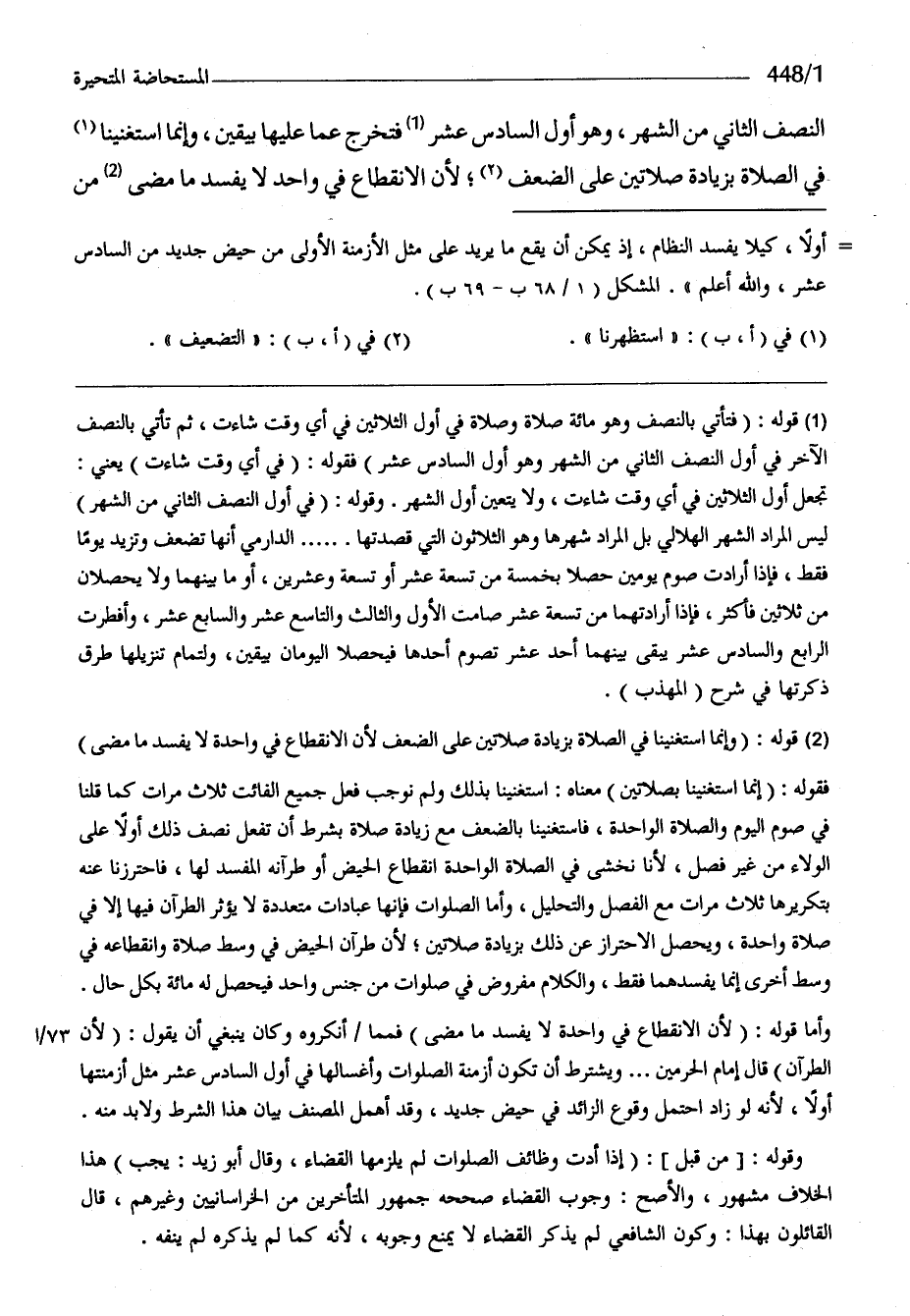 النّصْف الثَّانِي من الشَّهْر وَهُوَ أول السَّادِس عشر فَتخرج عَمَّا عَلَيْهَا بِيَقِين وَإِنَّمَا استغنينا فى الصَّلَاة بِزِيَادَة صَلَاتَيْنِ على الضعْف لِأَن الِانْقِطَاع فِي وَاحِد لَا يفْسد مَا مضى من