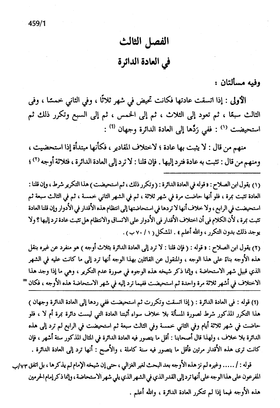 الْفَصْل الثَّالِث فِي الْعَادة الدائرة