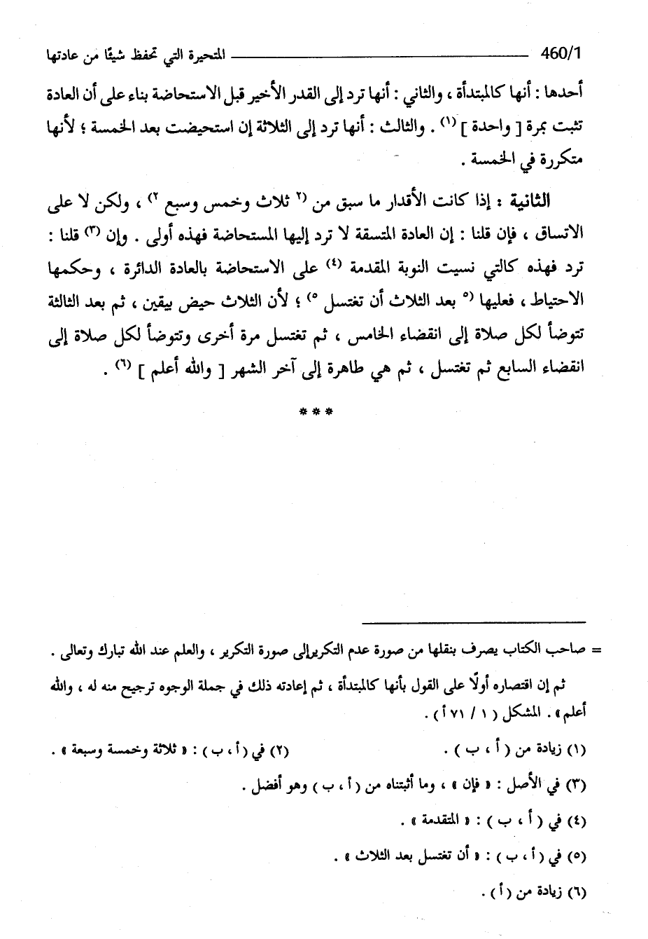 الثَّانِيَة إِذا كَانَت الأقدار مَا سبق من ثَلَاث وَخمْس وَسبع وَلَكِن لَا على الاتساق فَإِن قُلْنَا إِن الْعَادة المتسقة لَا ترد إِلَيْهَا الْمُسْتَحَاضَة فَهَذِهِ أولى وَإِن قُلْنَا ترد فَهَذِهِ كَالَّتِي نسيت النّوبَة الْمُقدمَة على الِاسْتِحَاضَة بِالْعَادَةِ الدائرة وَحكمهَا الِاحْتِيَاط فعلَيْهَا بعد الثَّلَاث أَن تَغْتَسِل لِأَن الثَّلَاث حيض بِيَقِين ثمَّ بعد الثَّالِثَة تتوضأ لكل صَلَاة إِلَى انْقِضَاء الْخَامِس ثمَّ تَغْتَسِل مرّة أُخْرَى وتتوضأ لكل صَلَاة إِلَى انْقِضَاء السَّابِع ثمَّ تَغْتَسِل ثمَّ هِيَ طَاهِرَة إِلَى آخر الشَّهْر وَالله أعلم