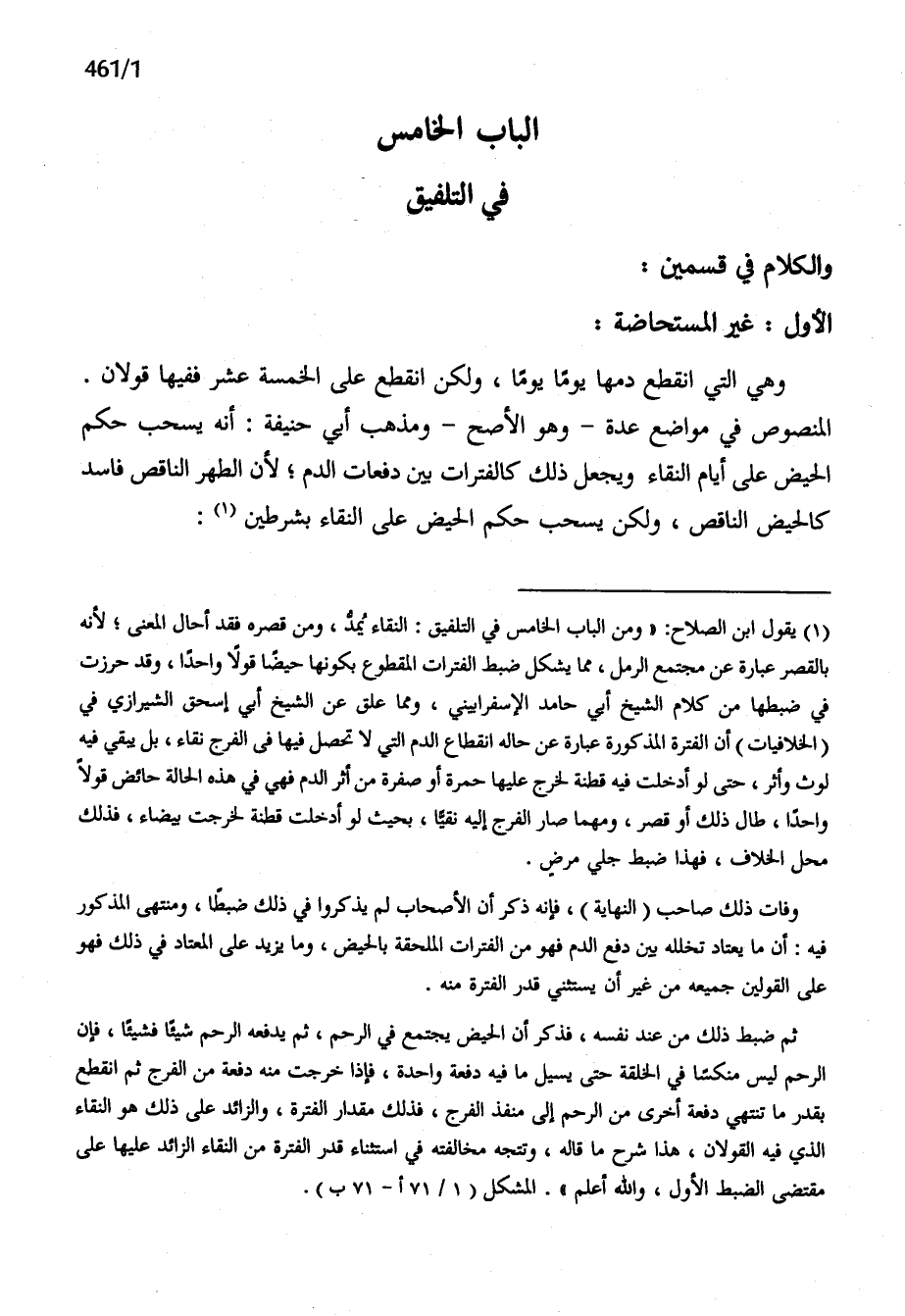 وَالْكَلَام فى قسمَيْنِ الأول غير الْمُسْتَحَاضَة