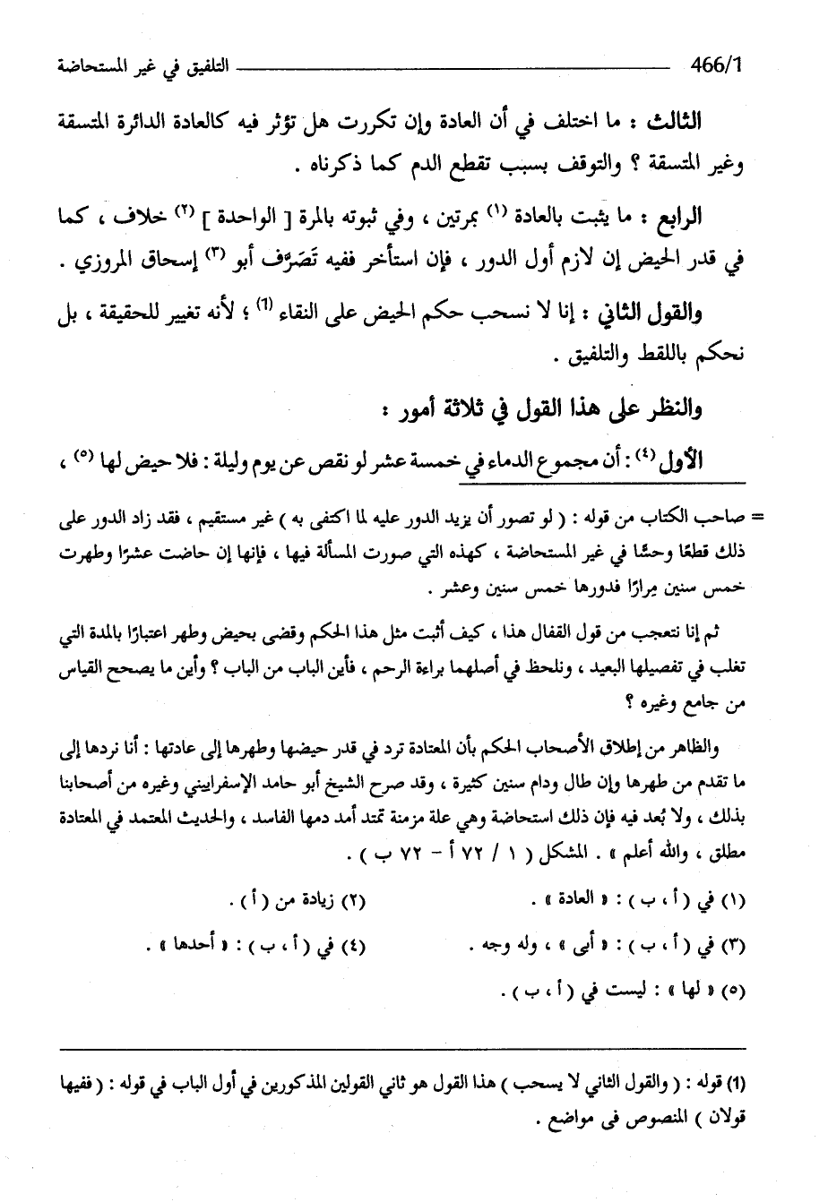 الأول أَن مَجْمُوع الدِّمَاء فِي خَمْسَة عشر لَو نقص عَن يَوْم وَلَيْلَة فَلَا حيض لَهَا