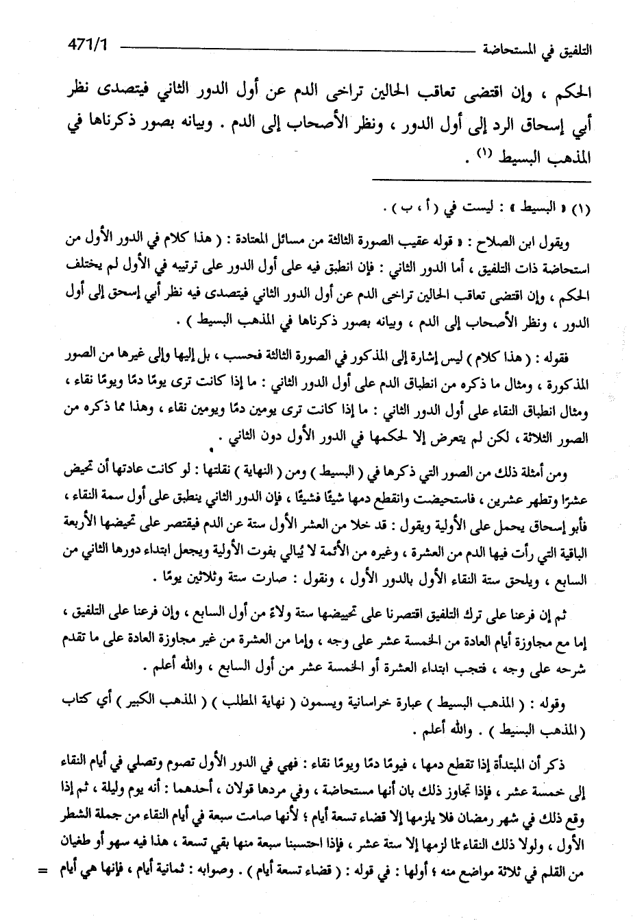 الحكم وَإِن اقْتضى تعاقب الْحَالين ترَاخى الدَّم عَن أول الدّور الثَّانِي فيتصدى نظر أبي إِسْحَاق الرَّد إِلَى أول الدّور وَنظر الْأَصْحَاب إِلَى الدَّم وَبَيَانه بصور ذَكرنَاهَا فِي الْمَذْهَب الْبَسِيط