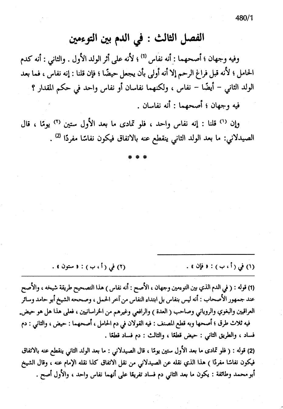 الْفَصْل الثَّالِث فِي الدَّم بَين التوءمين