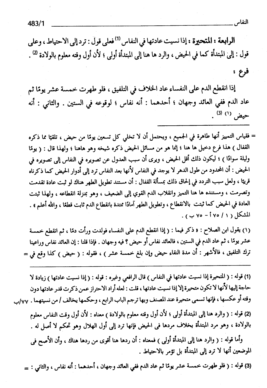الرَّابِعَة الْمُتَحَيِّرَة إِذا نسيت عَادَتهَا فِي النّفاس فعلى قَول ترد إِلَى الِاحْتِيَاط وعَلى قَول إِلَى المبتدأة كَمَا فِي الْحيض وَالرَّدّ هَا هُنَا إِلَى المبتدأة أولى لِأَن أول وقته مَعْلُوم بِالْولادَةِ