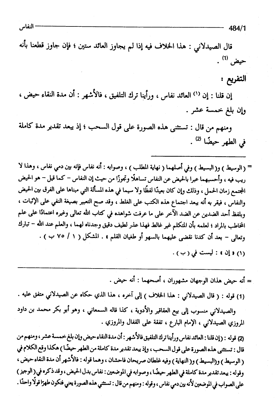 إِن قُلْنَا إِن الْعَائِد نِفَاس ورأينا ترك التلفيق فالأشهر أَن مُدَّة النَّقَاء حيض وَإِن بلغ خَمْسَة عشر
